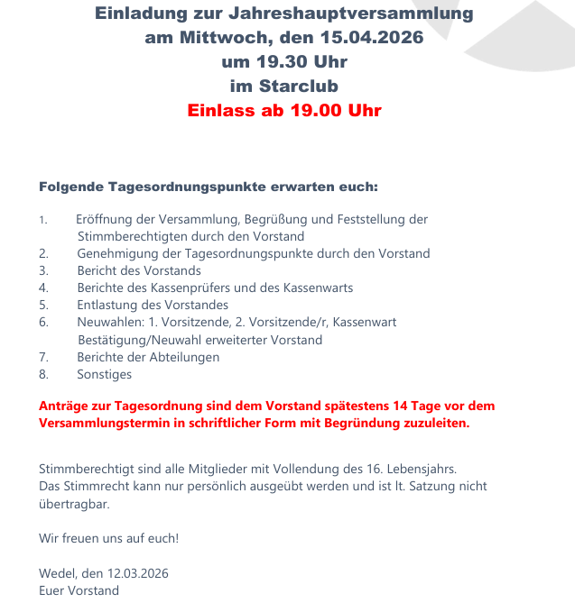 Einladung zur Jahreshauptversammlung am Mittwoch, den 15.04.2026 17. März 2026 Einladung zur Jahreshauptversammlung als PDF-Datei