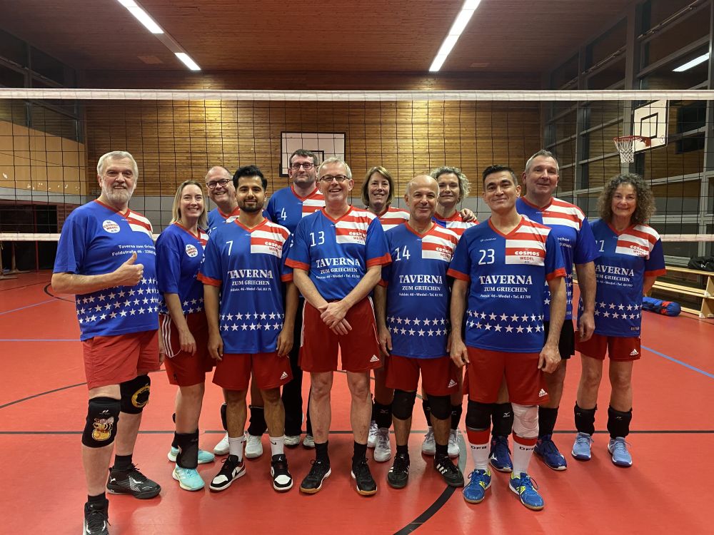 Wir treffen uns montags um 20 Uhr in der kleinen Halle des Ristgymnasiums in Wedel ( Zugang Pinneberger Str. ) und spielen als ” Mixed Mannschaft” zusammen Volleyball.